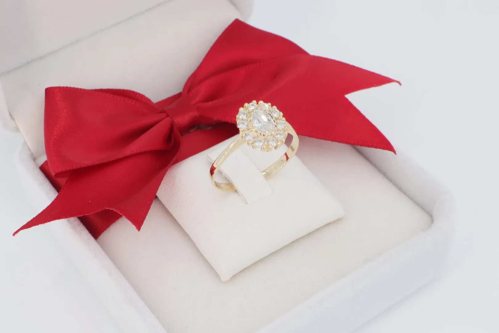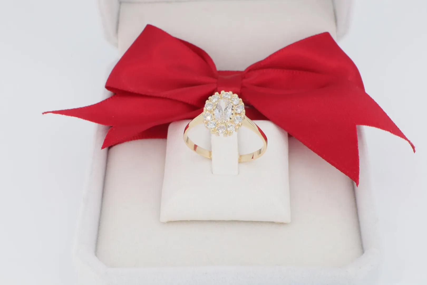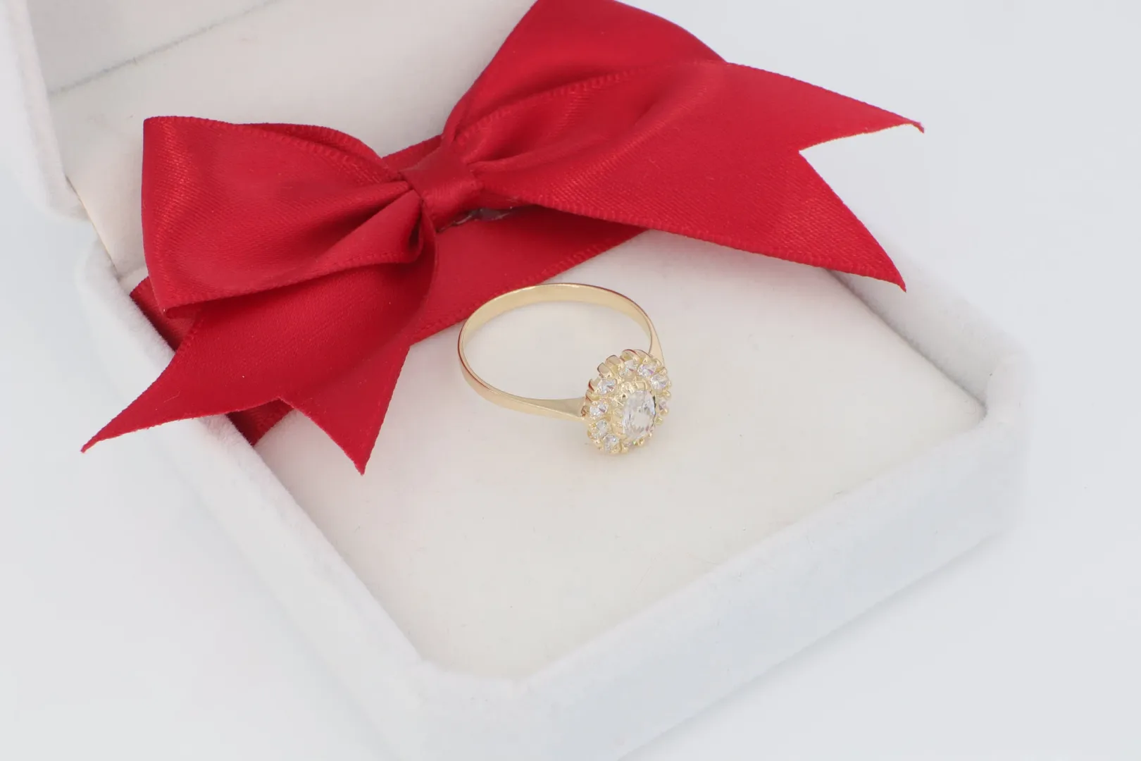 Ovális Cirkónia Gyűrű Halo Berakással: Feltűnő méret és dupla csillogás a fényudvar (halo) miatt.