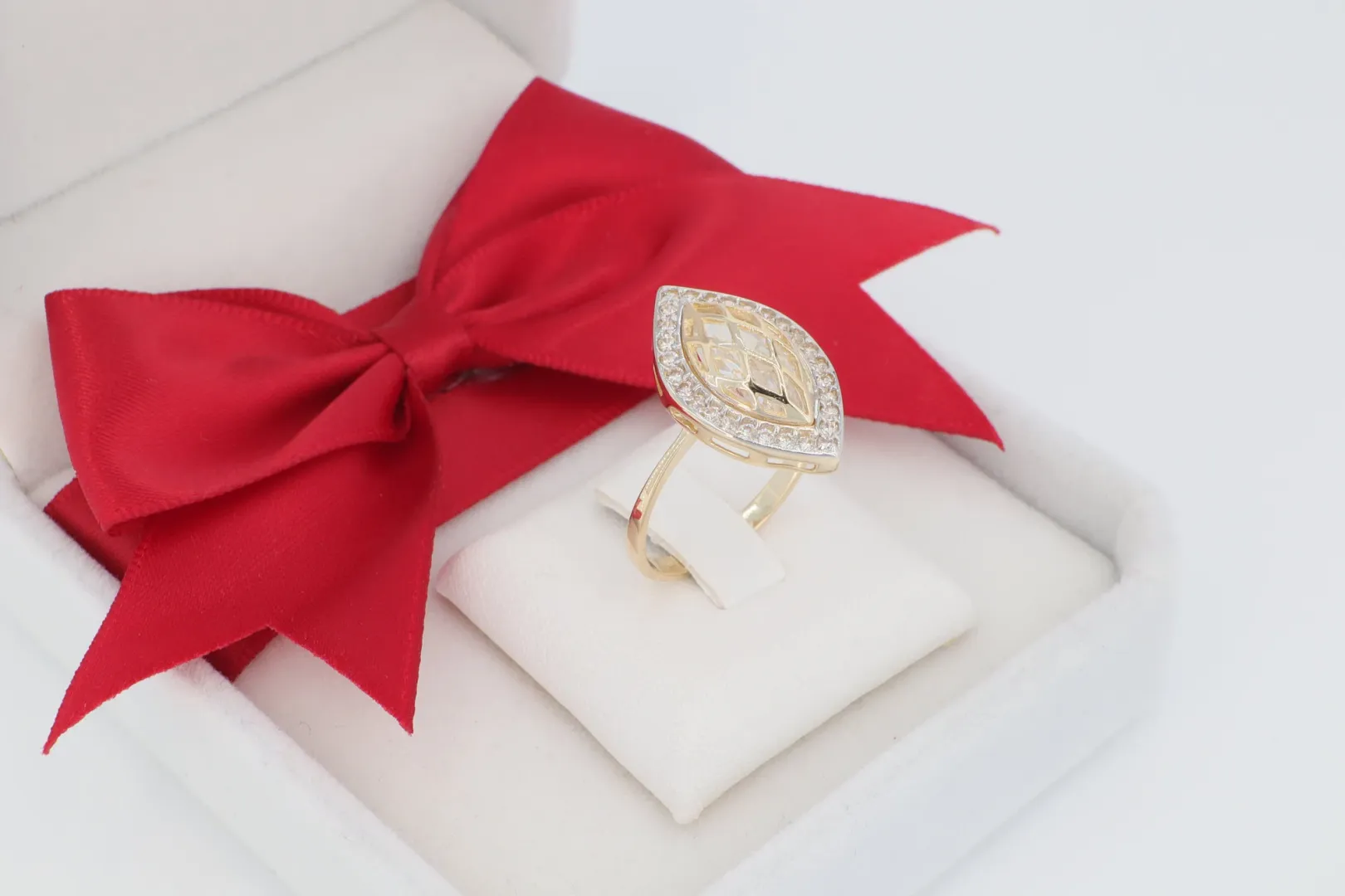 A GY0251 női arany gyűrű tökéletes választás, ha egy olyan nagyméretű gyűrűt keresel, amely elegáns és időtálló forma. A marquise alakú gyűrűk klasszikusak, de az áttört design és a gazdag cirkónia ékszer berakás modernné és egyedivé teszi ezt a darabot.