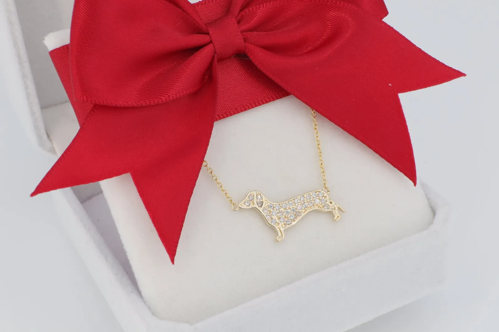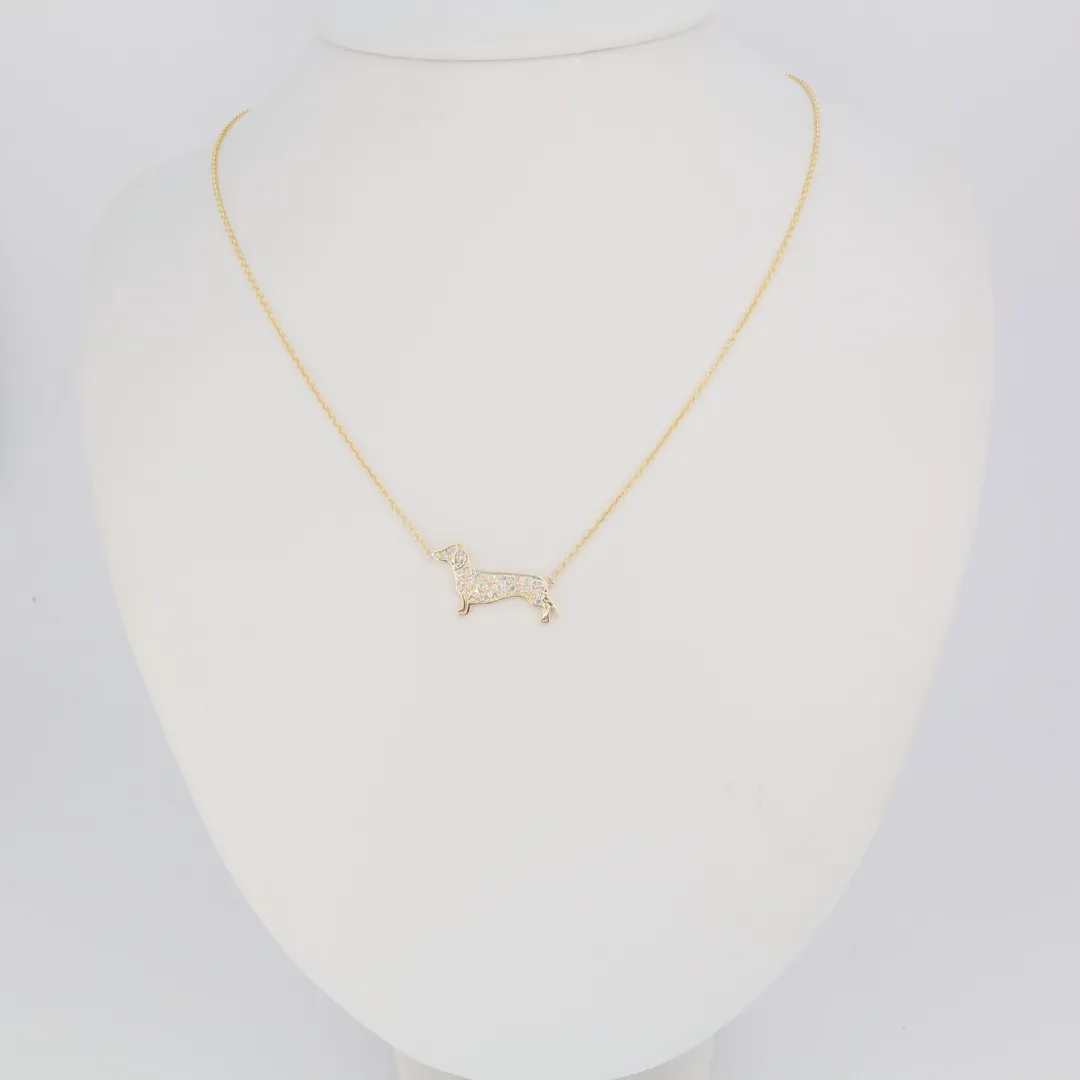 Az ány242-es nyaklánc a tacskó bájának, a hűségnek és a ragyogó luxusnak a stílusos kombinációja.