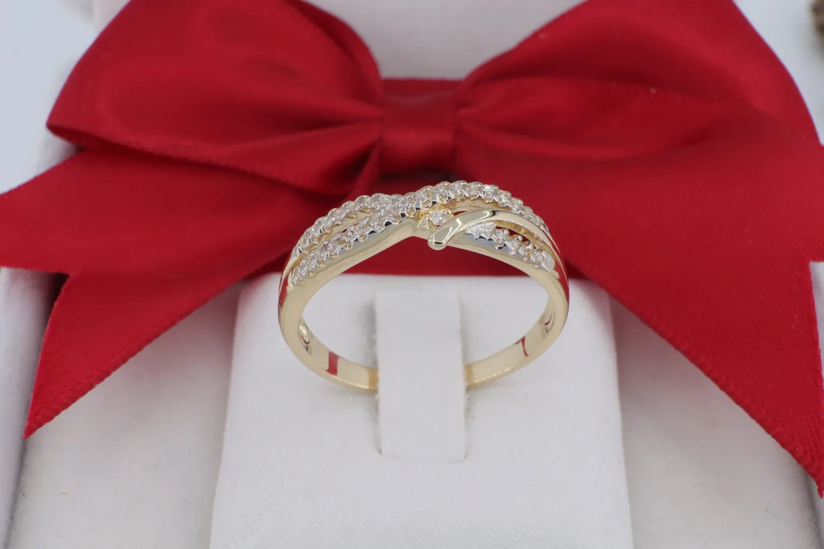 Hullámzó Bypass Forma: Az egymás mellett elhaló szárak dinamikus és modern sziluettet adnak a gyűrűnek.
