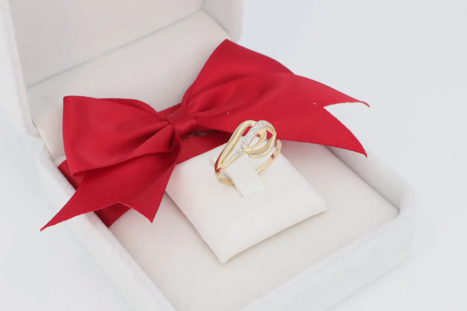 Hullámzó Szerkezet: A gyűrű feje három, lágyan ívelt sávból áll, amelyek a gyűrű középpontjában keresztezik egymást, egy elegáns, nyitott formát alkotva.
