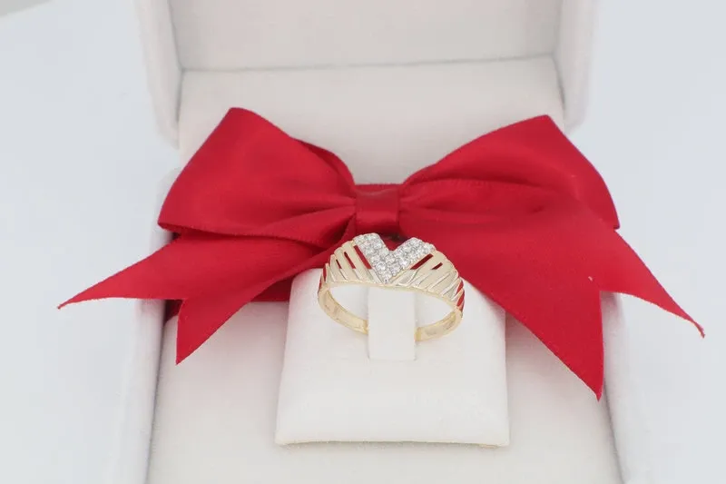 V-alakú (Chevron) Díszítés: A gyűrű közepén lévő éles, geometrikus V-forma modern és dinamikus stílust képvisel, elegánsan keretezve a csillogást.