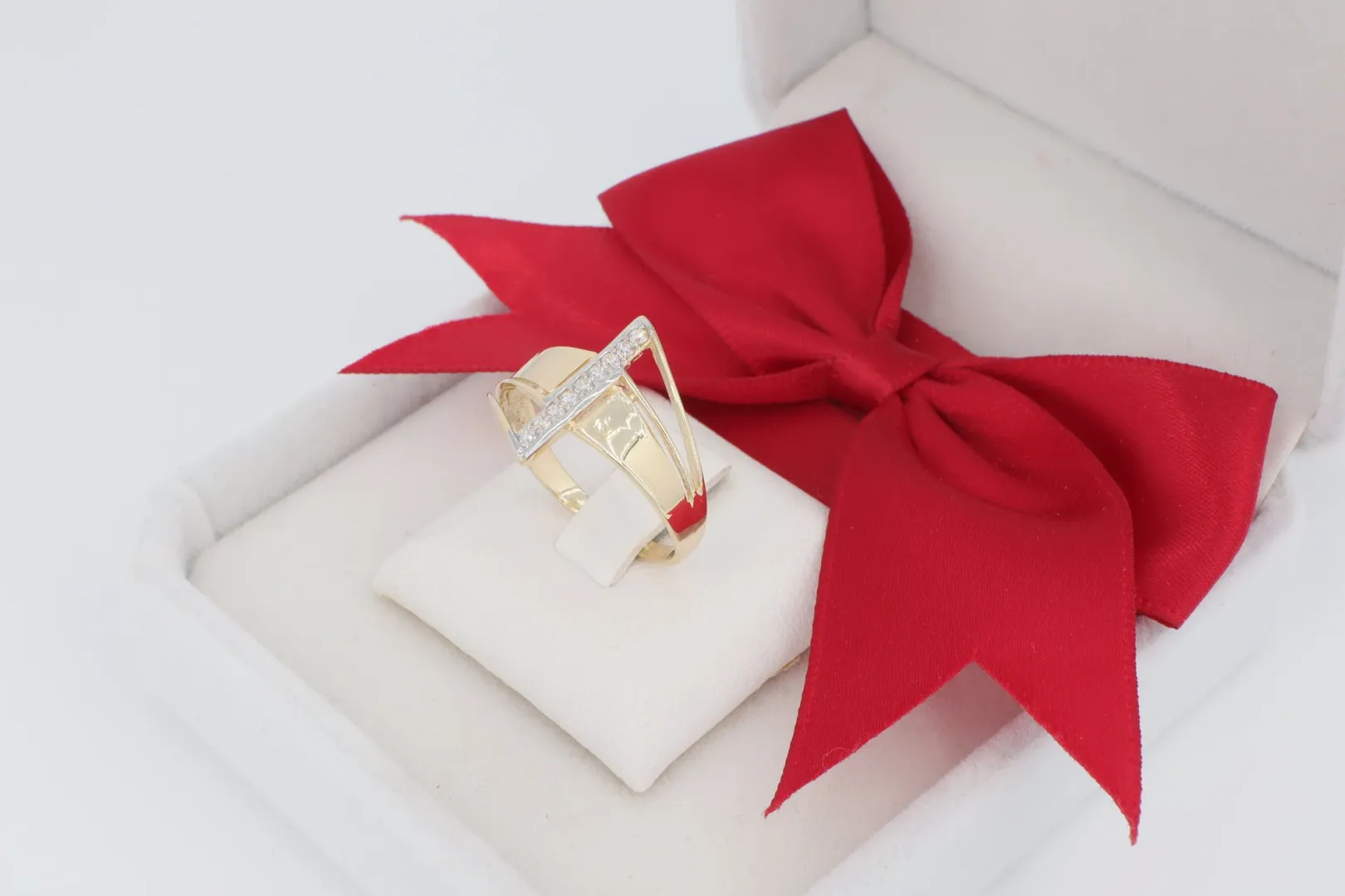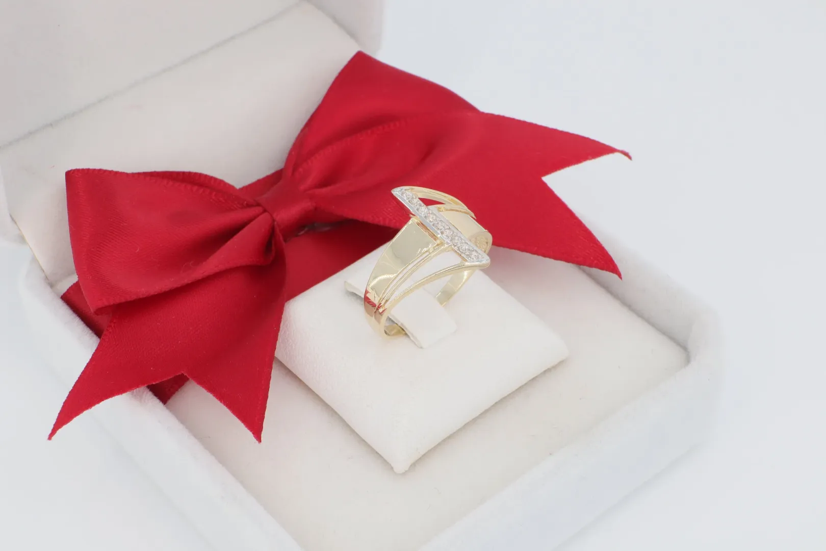A modern forma és a diszkrét ragyogás eleganciája! Rendelje meg most ezt a 14 karátos kéttónusú arany gyűrűt!