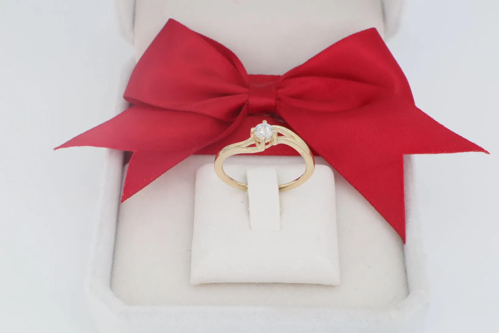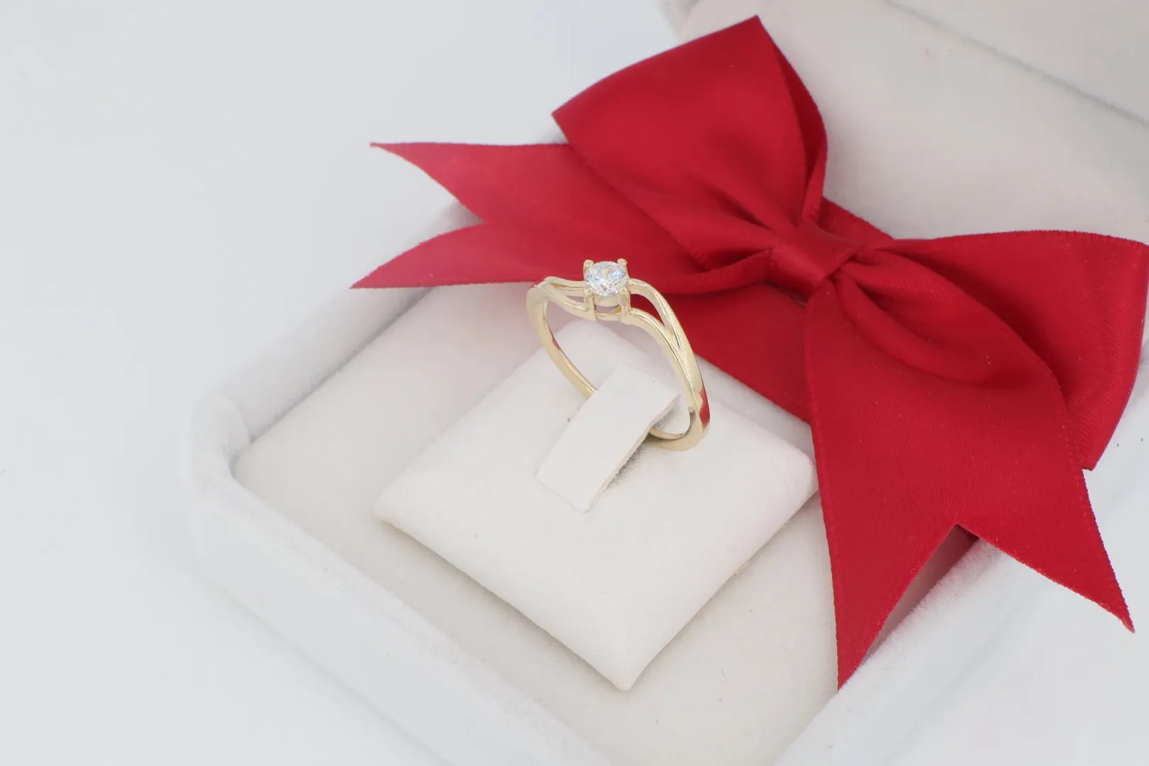 A gy1864-es Női Arany Gyűrű (14 karátos) a modern romantika és a karcsú elegancia tökéletes szimbóluma. A gyűrű a klasszikus szoliter gyűrűket értelmezi újra egy finom, dinamikusan ívelt sínnel, amely egy elegáns, keresztezett vonalvezetéssel öleli körül a főkövet. A sín két vonalból áll, melyek karcsú ívben emelkednek, találkoznak és megemelik a centrumban lévő, ragyogó, briliáns csiszolású cirkónia követ. Ez a design a mozgás, a finomság és az örök elkötelezettség érzetét kelti.