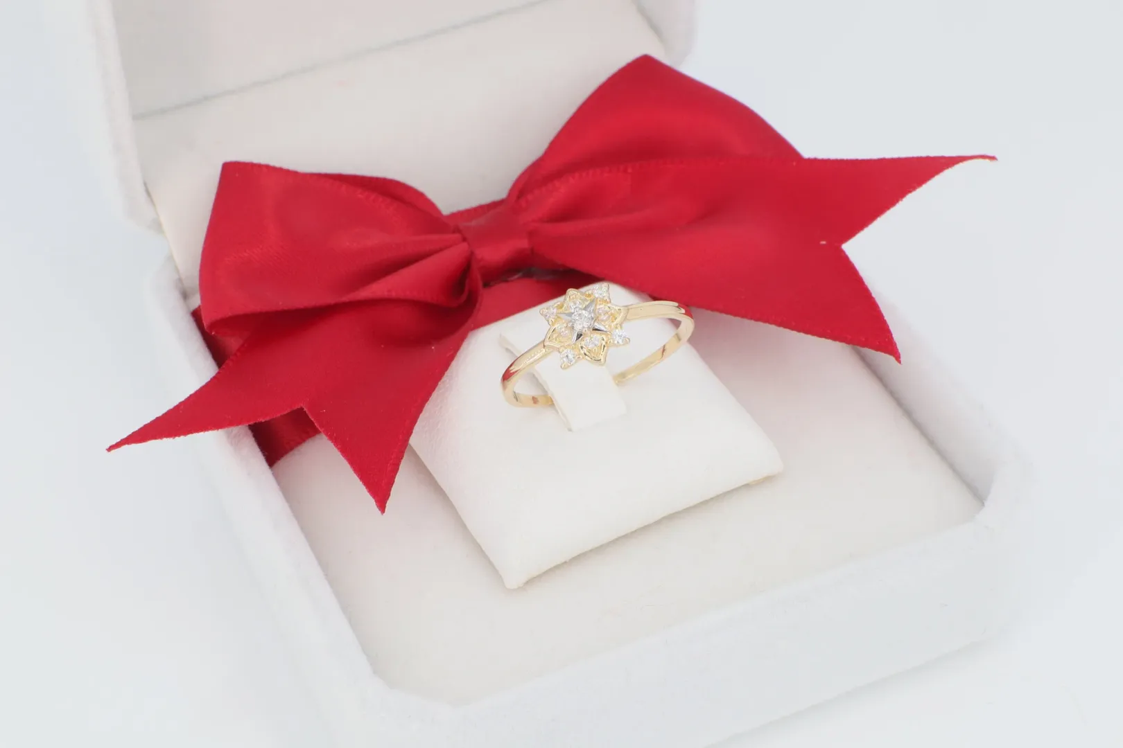 A 2099-es, 14 karátos arany gyűrű a finom nőiesség és a természetes szépség lenyűgöző kifejezése. Vékony, kecses gyűrűsínje letisztult alapot biztosít a központi motívumnak, amely egy stilizált, nyolc sziromból álló virágot ábrázol. A virág minden sziromát és közepét is apró, ragyogó cirkónia kövek díszítik, így garantálva a maximális csillogást. Ez az ékszer ideális választás azoknak, akik a romantikus, virágos motívumokat kedvelik, és egy elegáns, mégis bájos darabot keresnek.