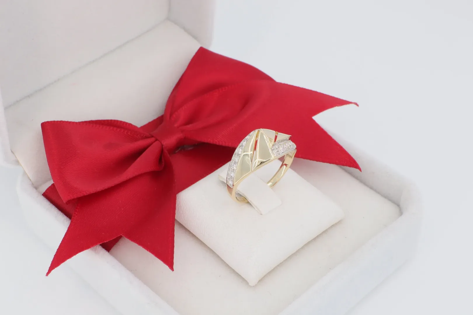 Ez az avantgárd 14K arany gyűrű ideális kiegészítő mindazoknak, akik kedvelik a geometriai formákat, és egy olyan ékszert keresnek, ami nem csak csillog, hanem karaktert is ad viselőjének. Tökéletes választás különleges eseményekre vagy egyedi ajándéknak.