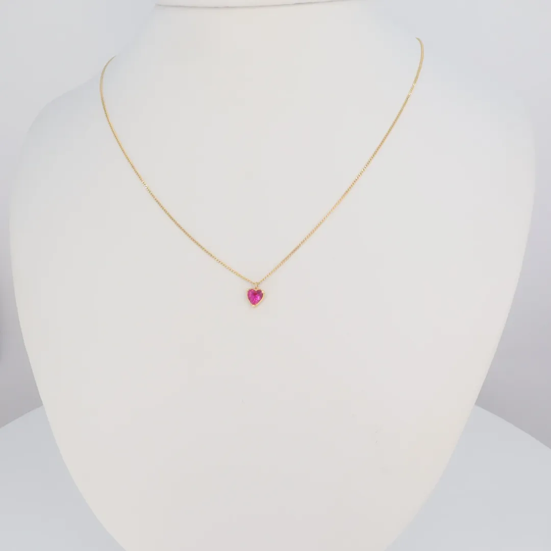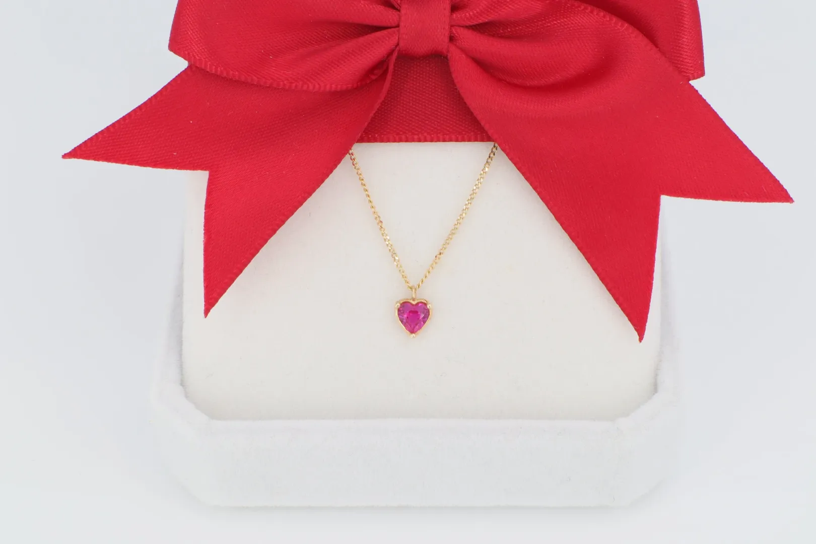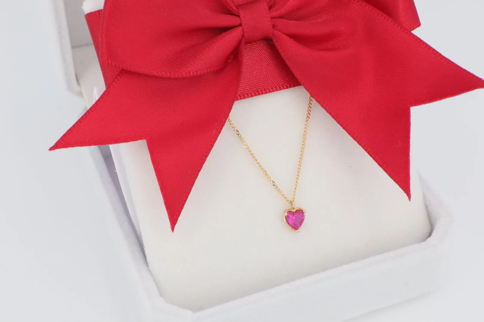 Készleten, várható szállítási idő: 2026.03.18. 14 karátos sárga arany nyaklánc, divatos szív medállal, csillogó piros cirkónia kővel