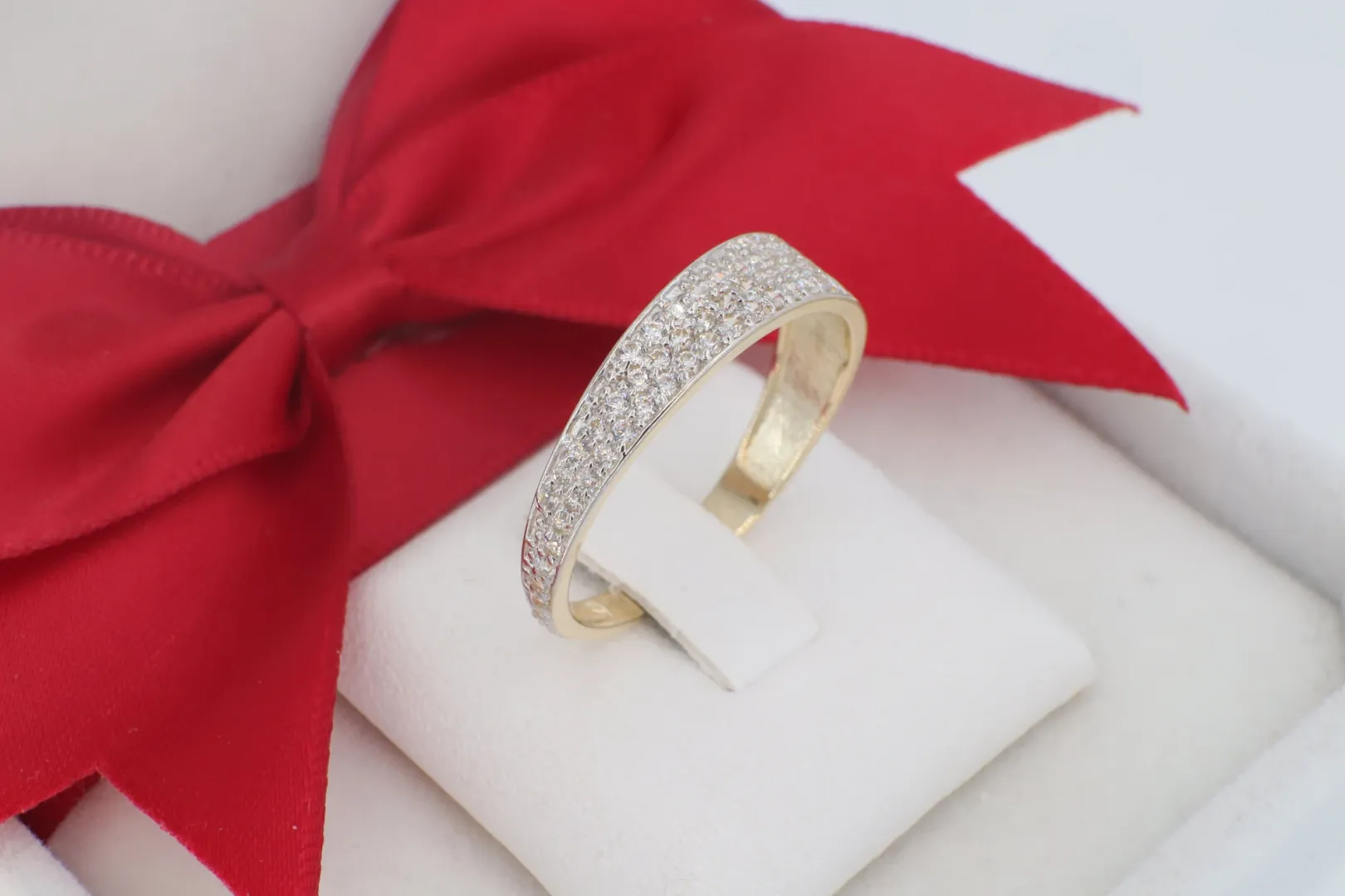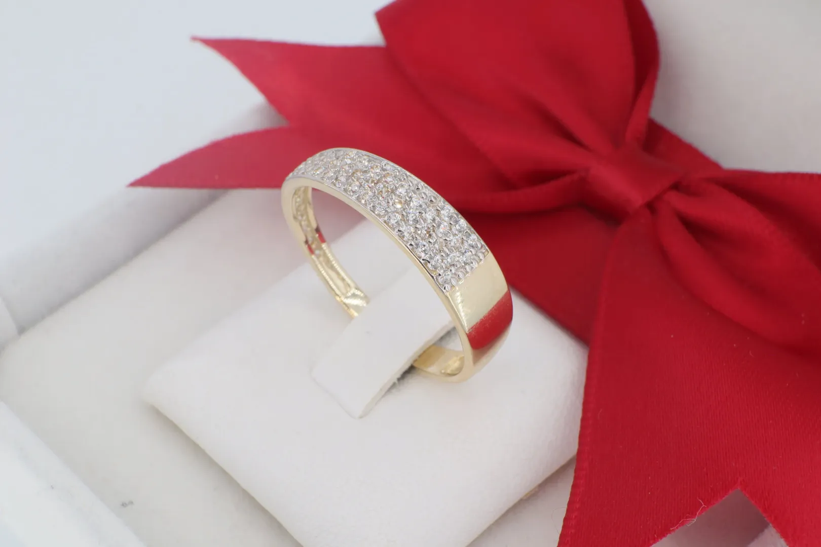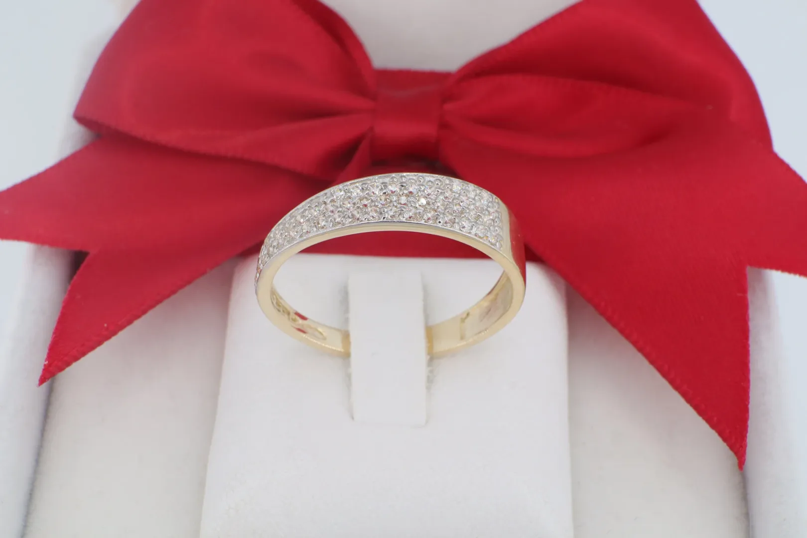 Ragyogó 14 Karátos Arany Gyűrű Széles Cirkónia Pavé Kövezéssel (gy1825)
