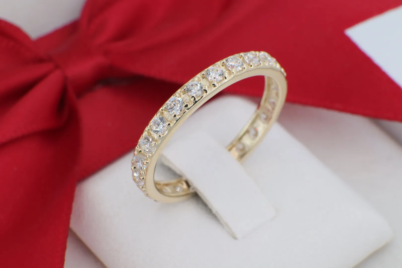 Ragyogó 14 Karátos Arany Gyűrű – Végtelen Csillogású Körbe köves Design (gy1779)