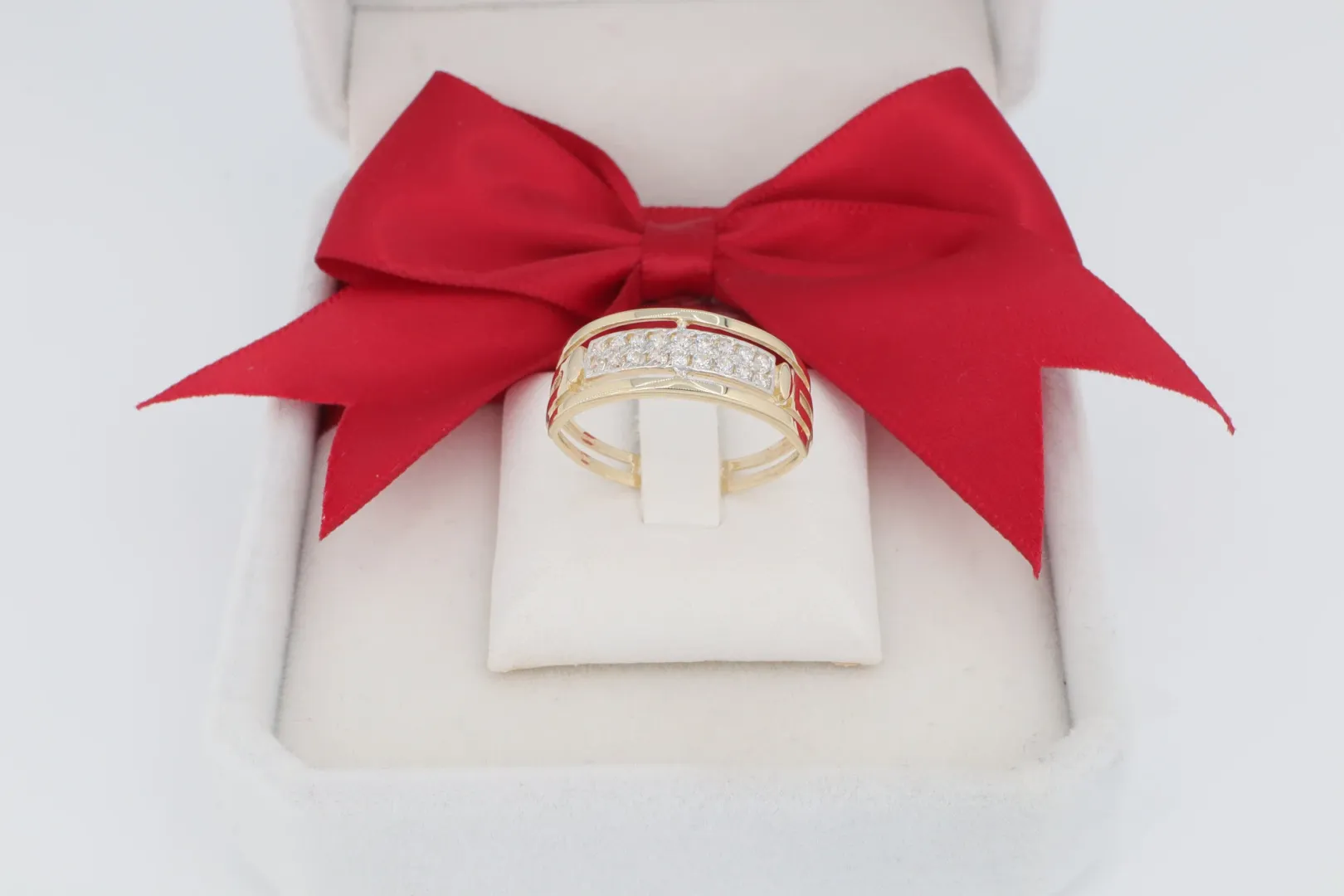 Ha egy látványos, kétszínű arany gyűrűt keresel, amely a kifinomultságot és a ragyogást ötvözi, ez a modell tökéletes.