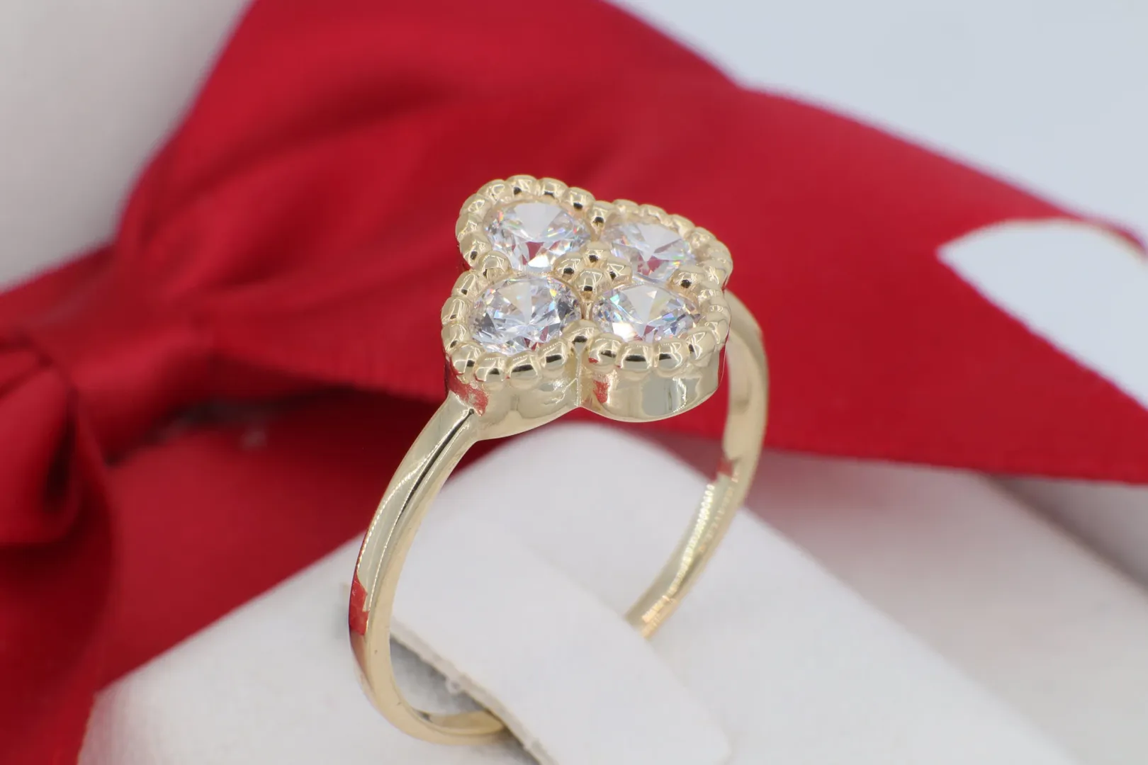 Szerencsehozó 14 Karátos Arany Négylevelű Lóhere Gyűrű (gy2129)