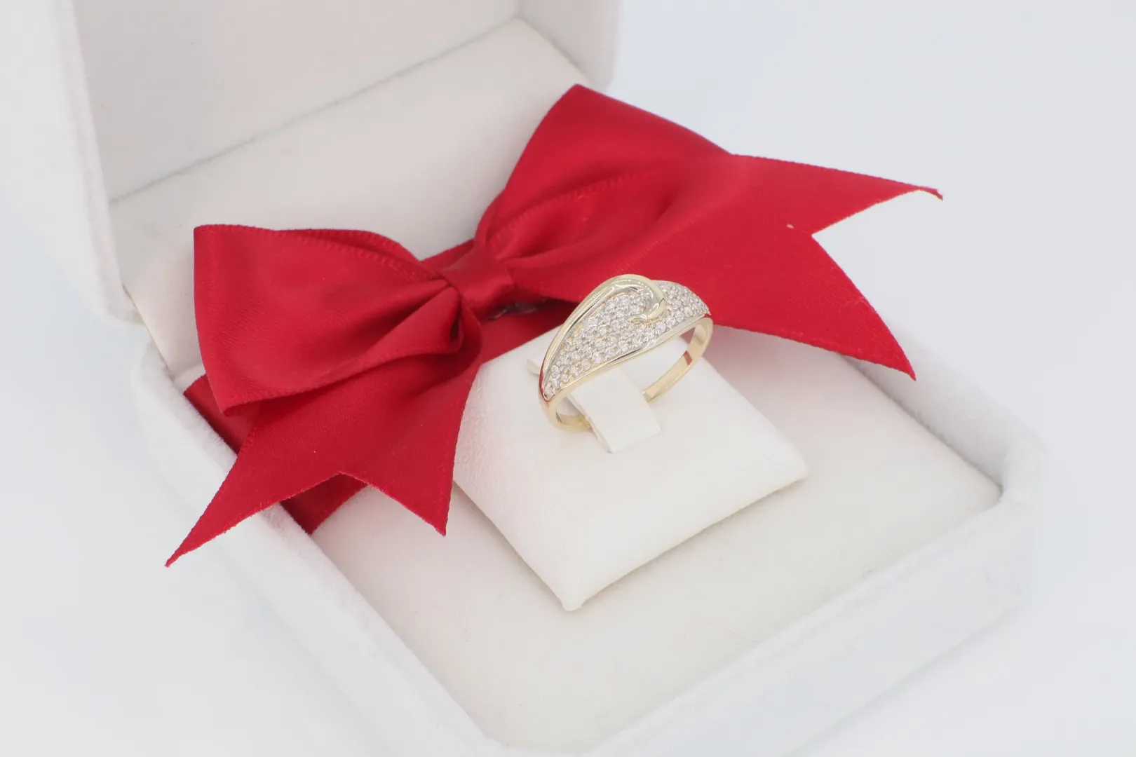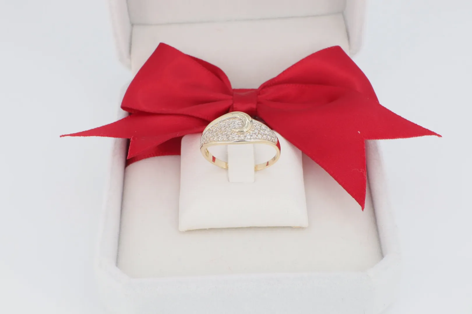 A GY1986 -14 karátos sárga arany gyűrű a maximális csillogás és a modern, íves dizájn tökéletes képviselője. Kialakítása egy feltűnő, domború, áramló formára épül, amely teljes felületén ragyogó cirkónia kövekkel van beborítva.