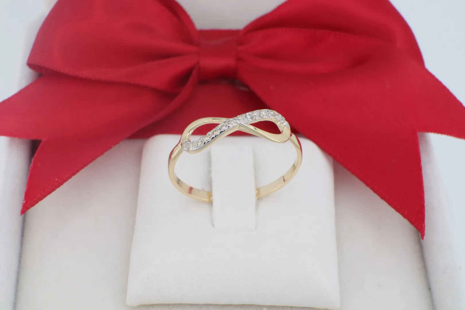 Végtelen Jel Motívum: A gyűrű feje egy kecsesen hajlított végtelen jelet formáz, amely finoman simul az ujjra, légies és nőies megjelenést biztosítva.