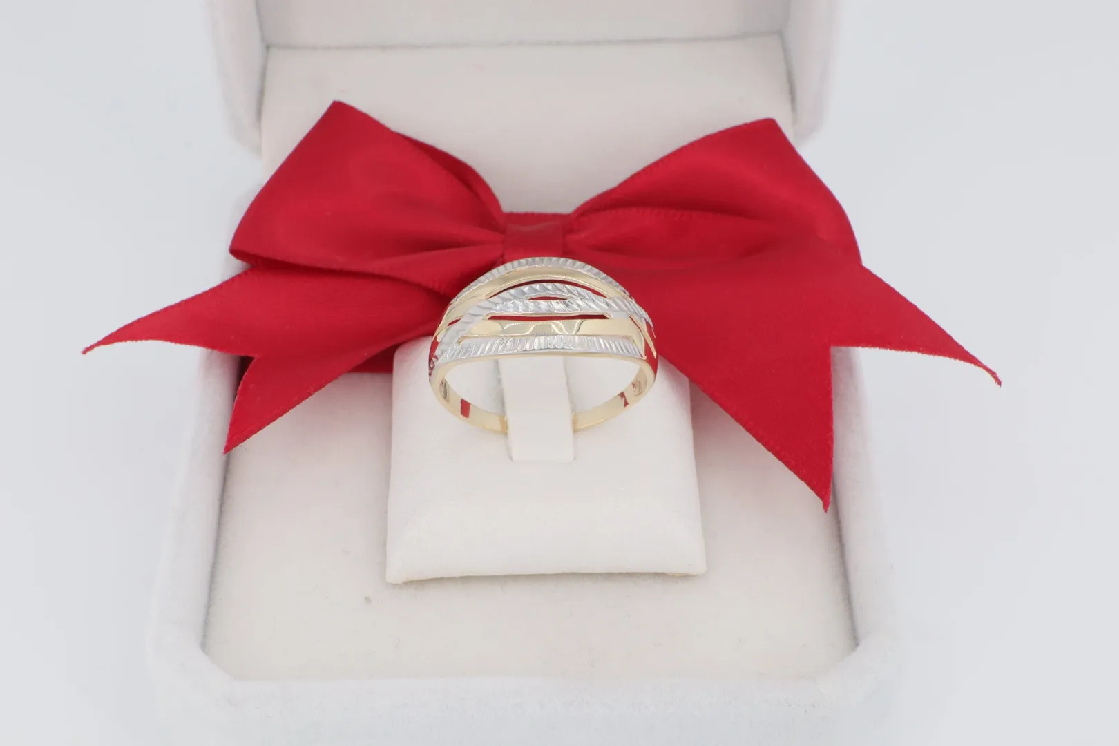 Ez a női arany gyűrű tökéletes választás azoknak, akik egy feltűnő, de elegáns ékszert keresnek, amely a különböző textúráknak köszönhetően igazán különleges.