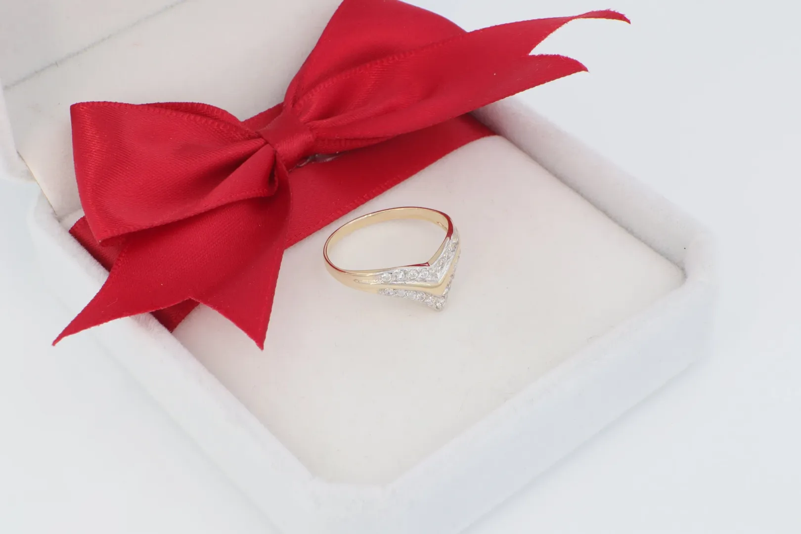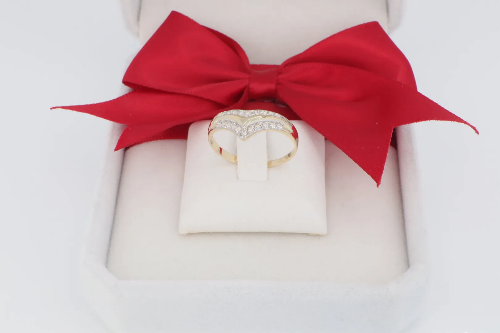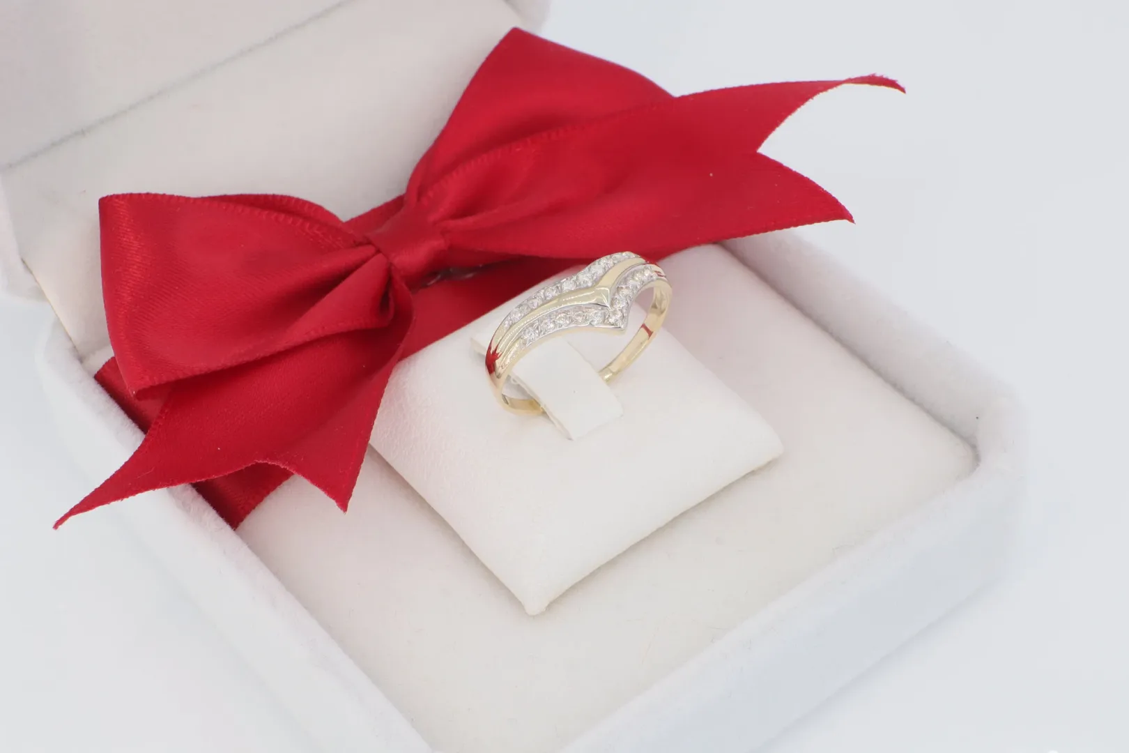 Célközönség: Ajánlott mindazoknak, akik egy modern, V-formájú, jól kombinálható, és ragyogó cirkónia berakással díszített 14 karátos arany gyűrűt keresnek.