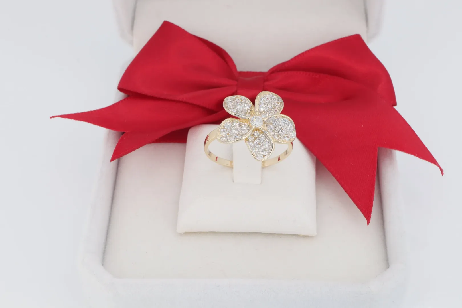 Virág Arany Gyűrű Cirkóniával: Romantikus, nőies motívum, tökéletes tavaszi vagy nyári ékszer.