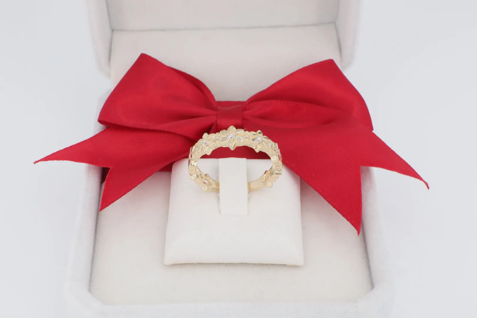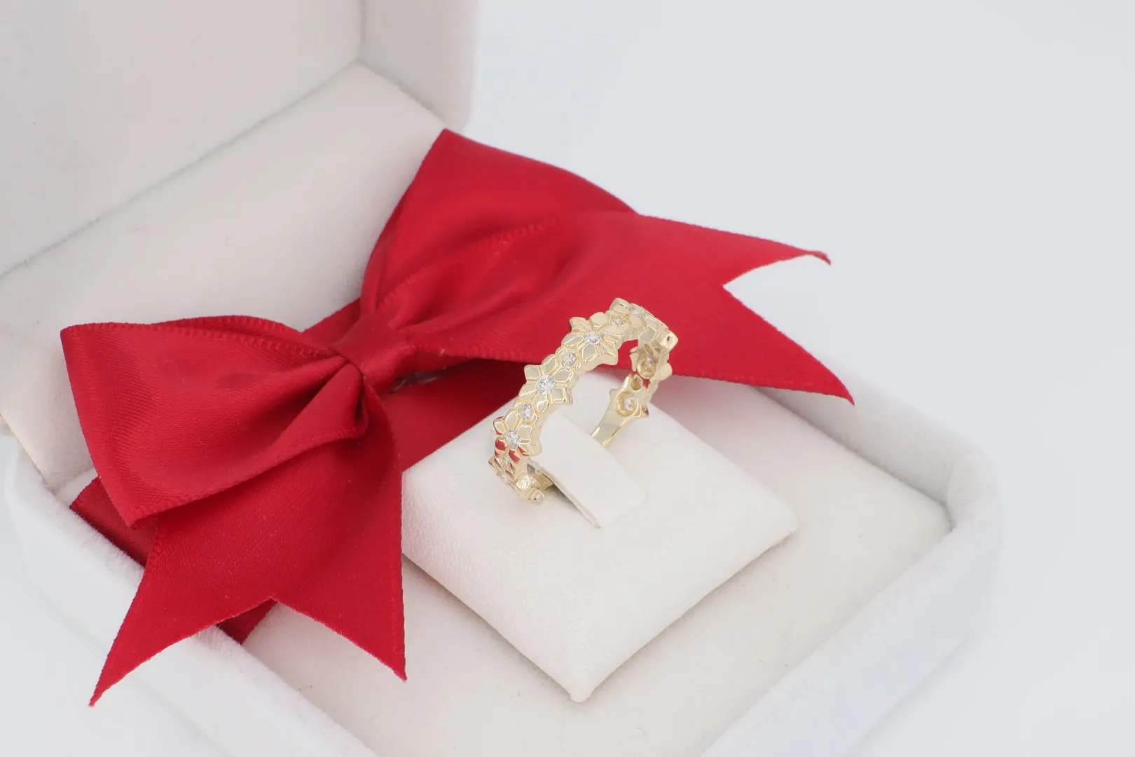 Végtelenített Virágmotívum: A gyűrű sínjét áttört, körbefutó virág- és levélminták alkotják. Ez a motívum egyrészt nagyon romantikus, másrészt az ún. eternity stílusra emlékeztet, jelképezve az örökkévalóságot.
